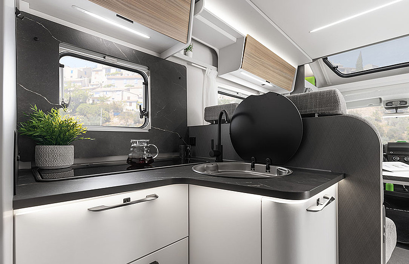 Heimweh unmöglich! Wenn Sie mit Ihrem teilintegrierten Fahrzeug auf Fiat Basis die Welt erobern, fühlen Sie sich an jedem Ort so wohl wie zuhause und lassen sich voll und ganz auf die Schönheit des Augenblicks ein. Betreten Sie den Wohnraum durch die breite Aufbautür mit Fenster und freuen Sie sich: Von den Betten über die Küche bis hin zum großzügigen Bad – der mobile Traumurlaub verspricht Erholung und Freiheit an jedem Ort.